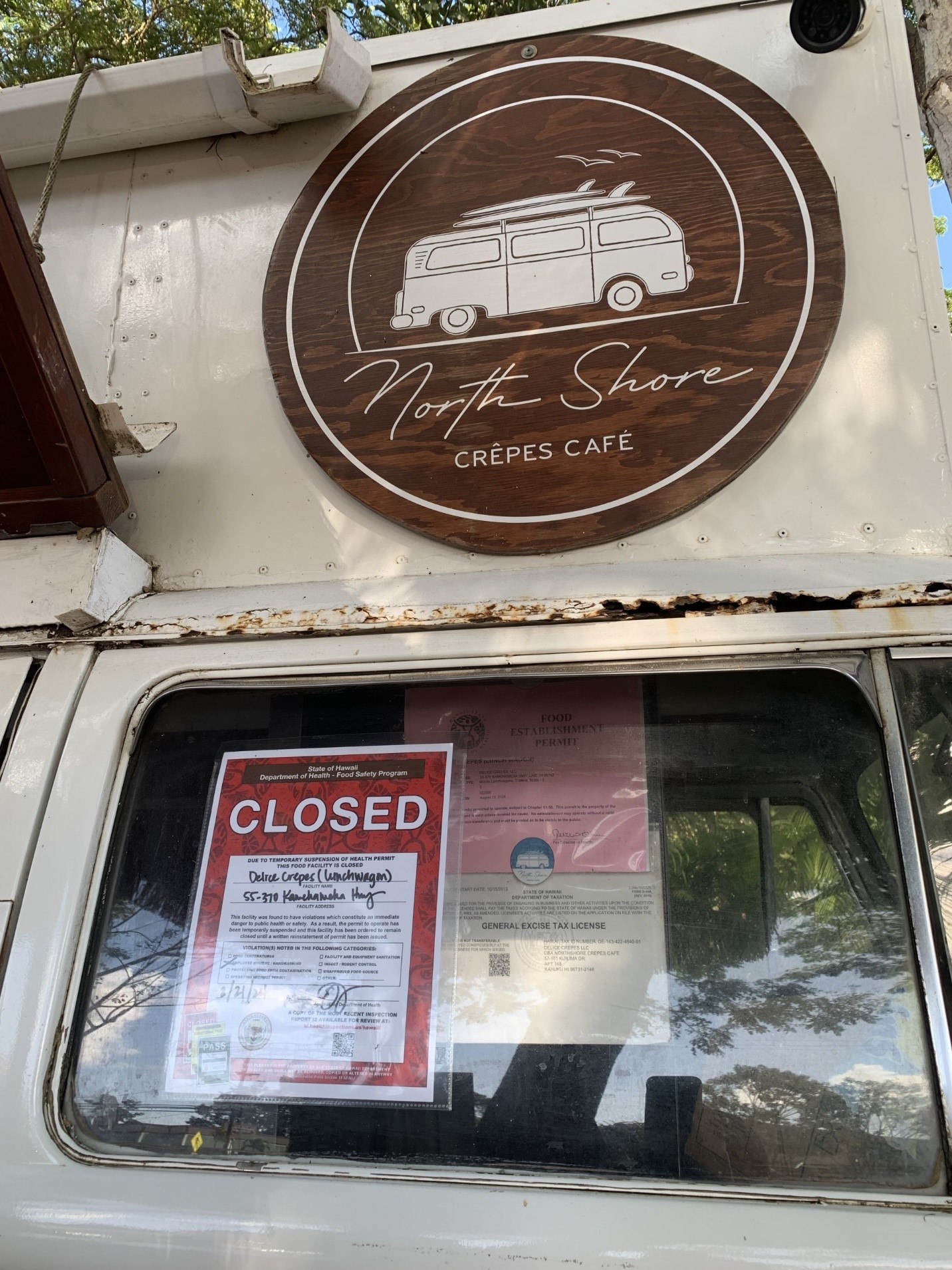 DOH issues red placard to Delice Crepes (lunch wagon) in Haleʻiwa